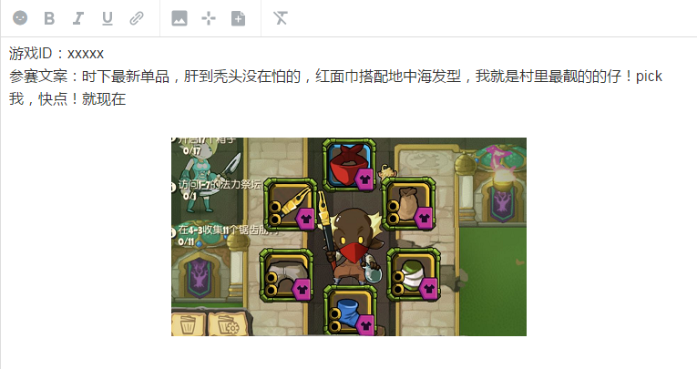 示例:(文案也很重要哦,越奇葩越神奇的造型胜出率更高哦!)